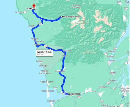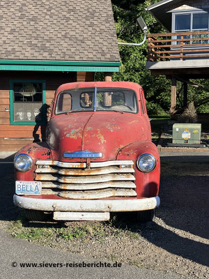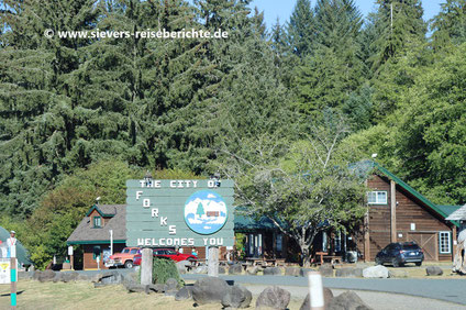 Für uns ging es vom Hoh Regenwald weiter nach Forks, wo wir heute übernachten. Forks ist eine kleine Stadt mit ca. 3400 Einwohnern. Die Stadt erreichte durch die Vampirreihe Twilight große Bekanntschaft. Im Ort kann man viele Souvenirs von Twilight erwerben. Der rote Wagen von Bella steht am Ortseingang. Wir mussten ihn natürlich auch fotografieren, obwohl keiner von uns die Filme gesehen hat.