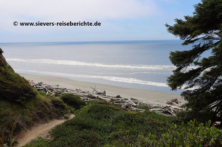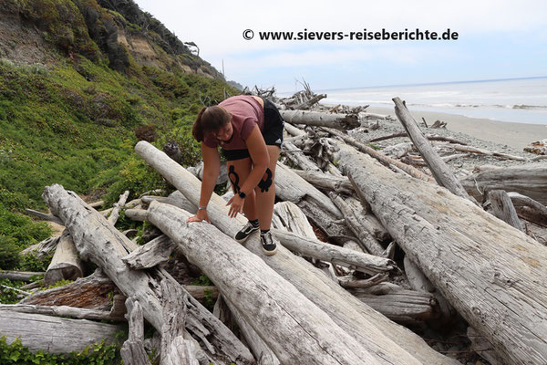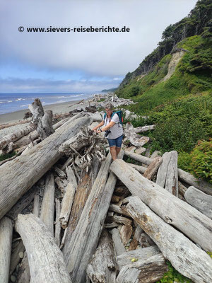 Unser nächster Halt war der Kalaloch Beach 1. Hier lag der gesamte Strand voller Treibholz. Beziehungsweise musste man über etliche Baumstämme klettern um an den Strand zu kommen. Wir sind alle gesund hin und zurück gekommen. War aber schon abenteuerlich 😬.